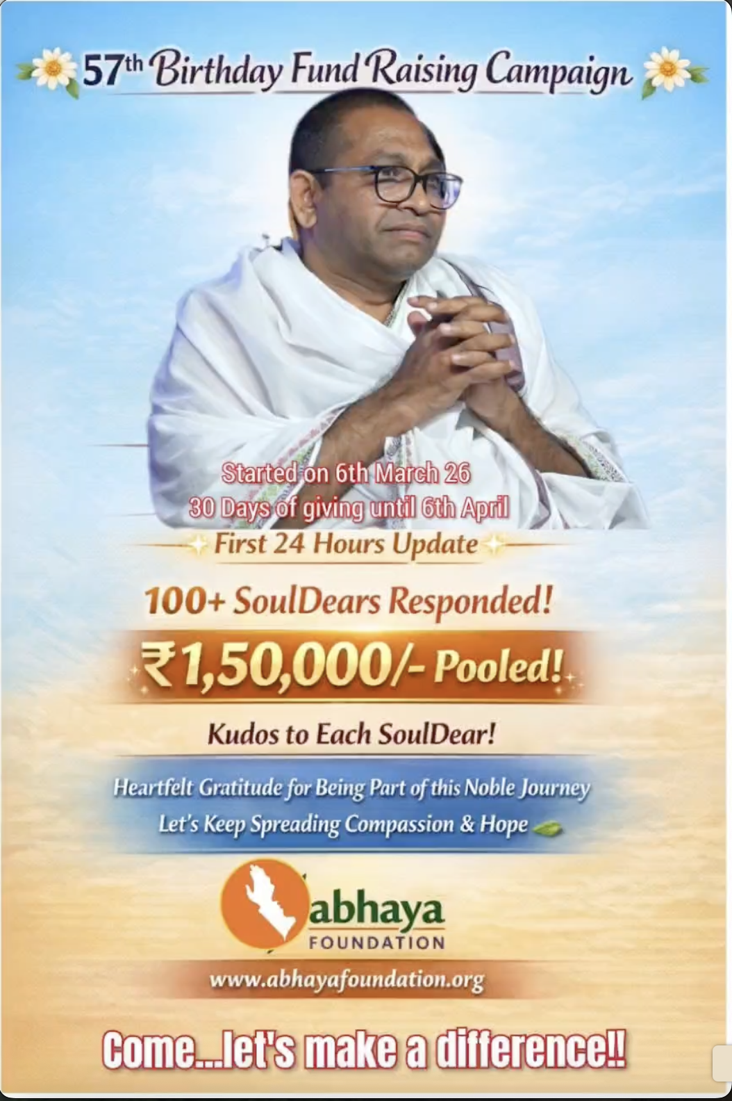 07/03/2026:57th Birthday Fund Raising Campaign Update
