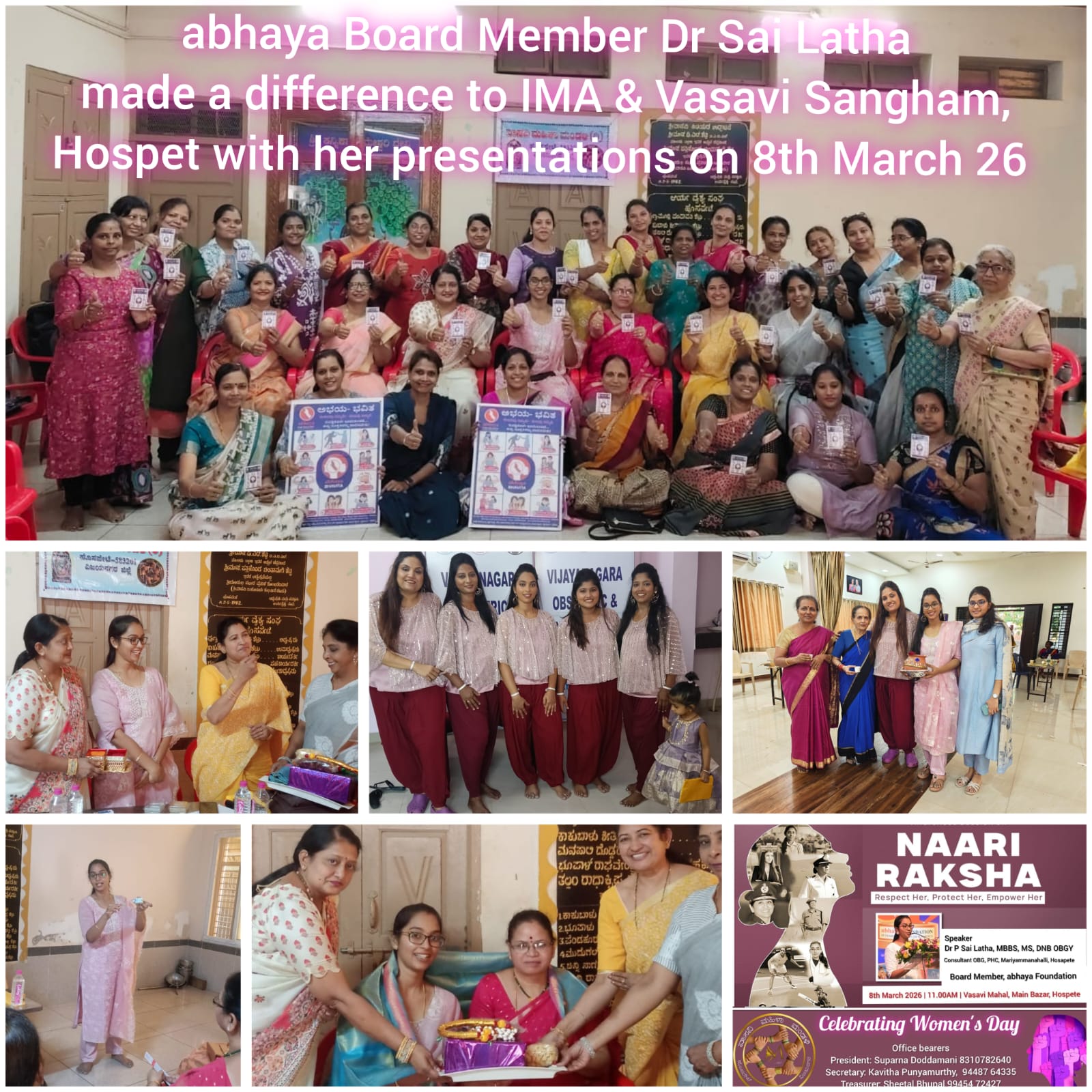 abhaya Board member Dr Sai Latha made a difference to IMA & Vasavi Sangham, Hospet with her presentations